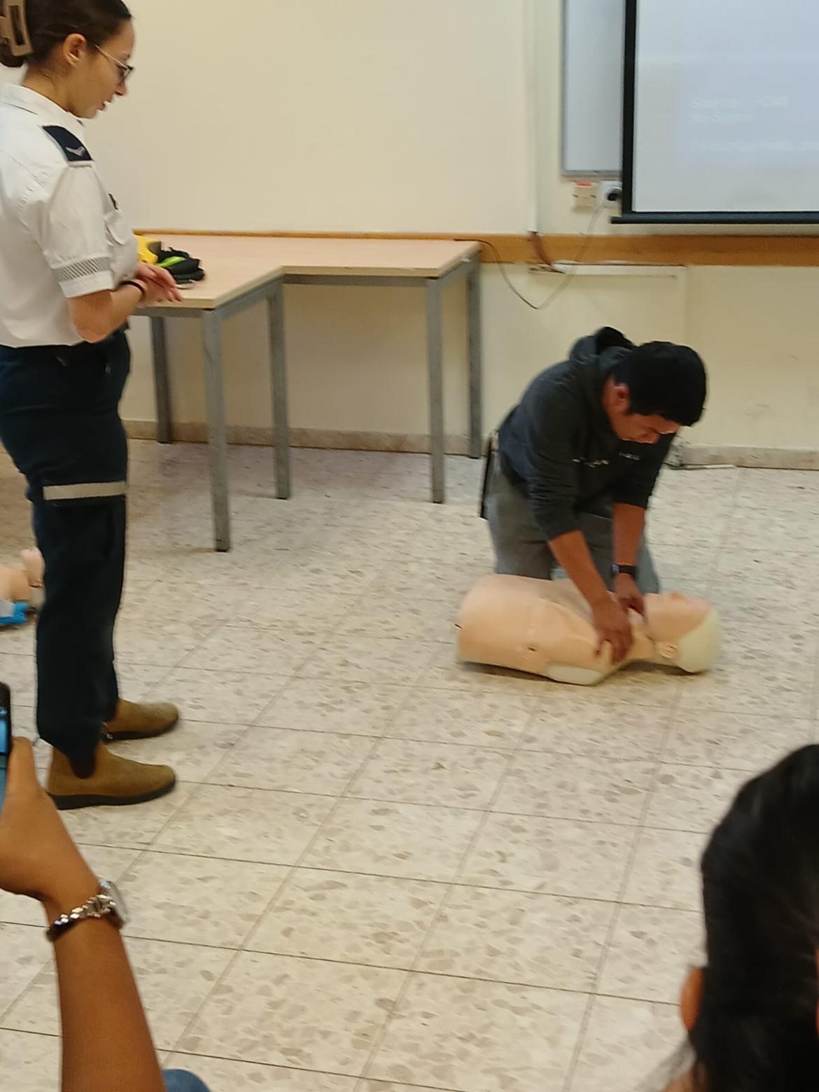 במהלכו קבלו הדרכה מעשית במתן עזרה מידית במצב של החייאה וחנק וכן למדו כיצד להשתמש בדפברילטור.