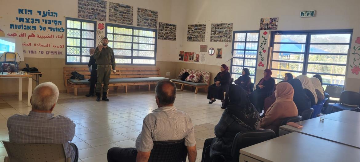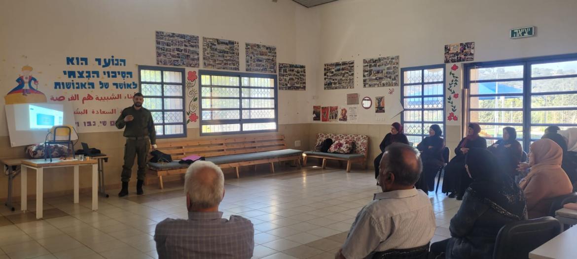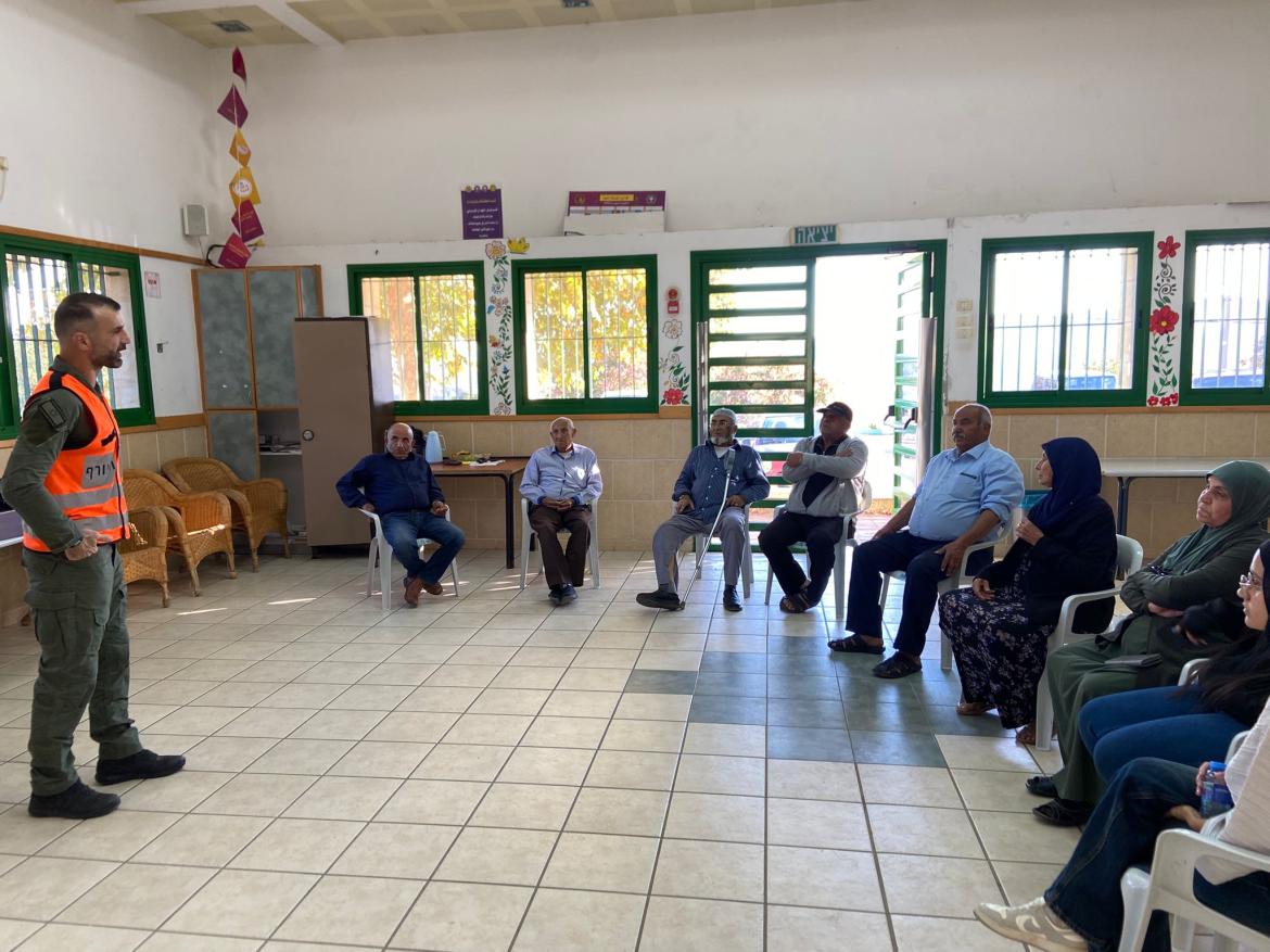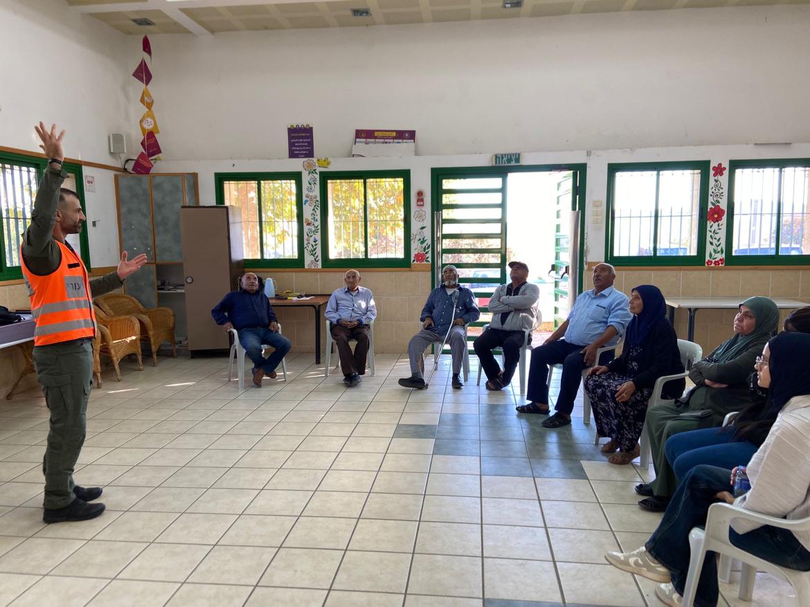 أدار اللقاءات مدرب من قيادة الجبهة الداخلية قام بتعليم المسنين قواعد السلوك عند تلقي تحذير بشأن إطلاق الصواريخ والقذائف.