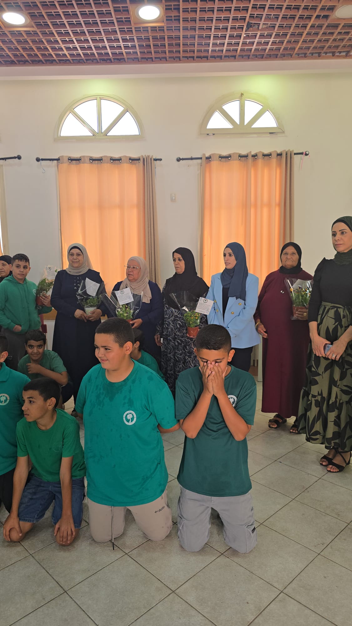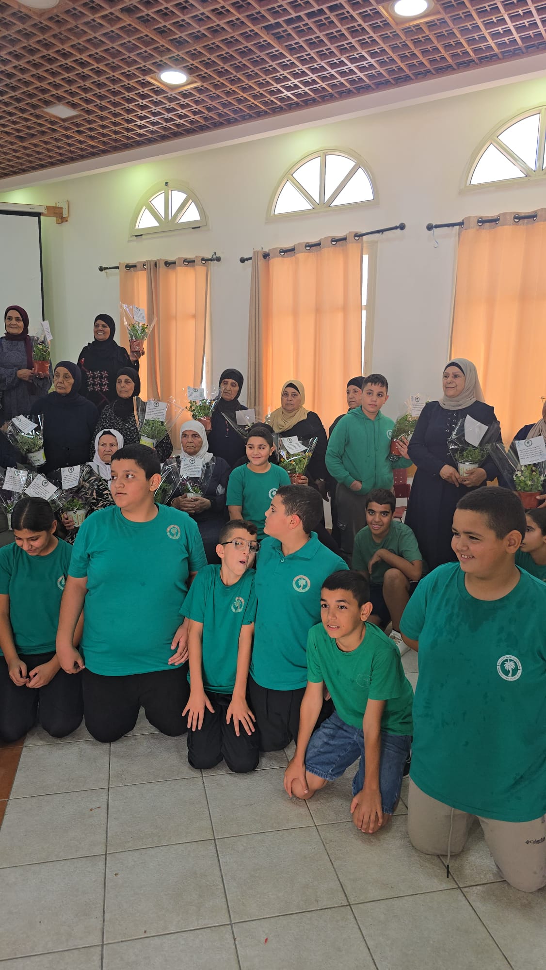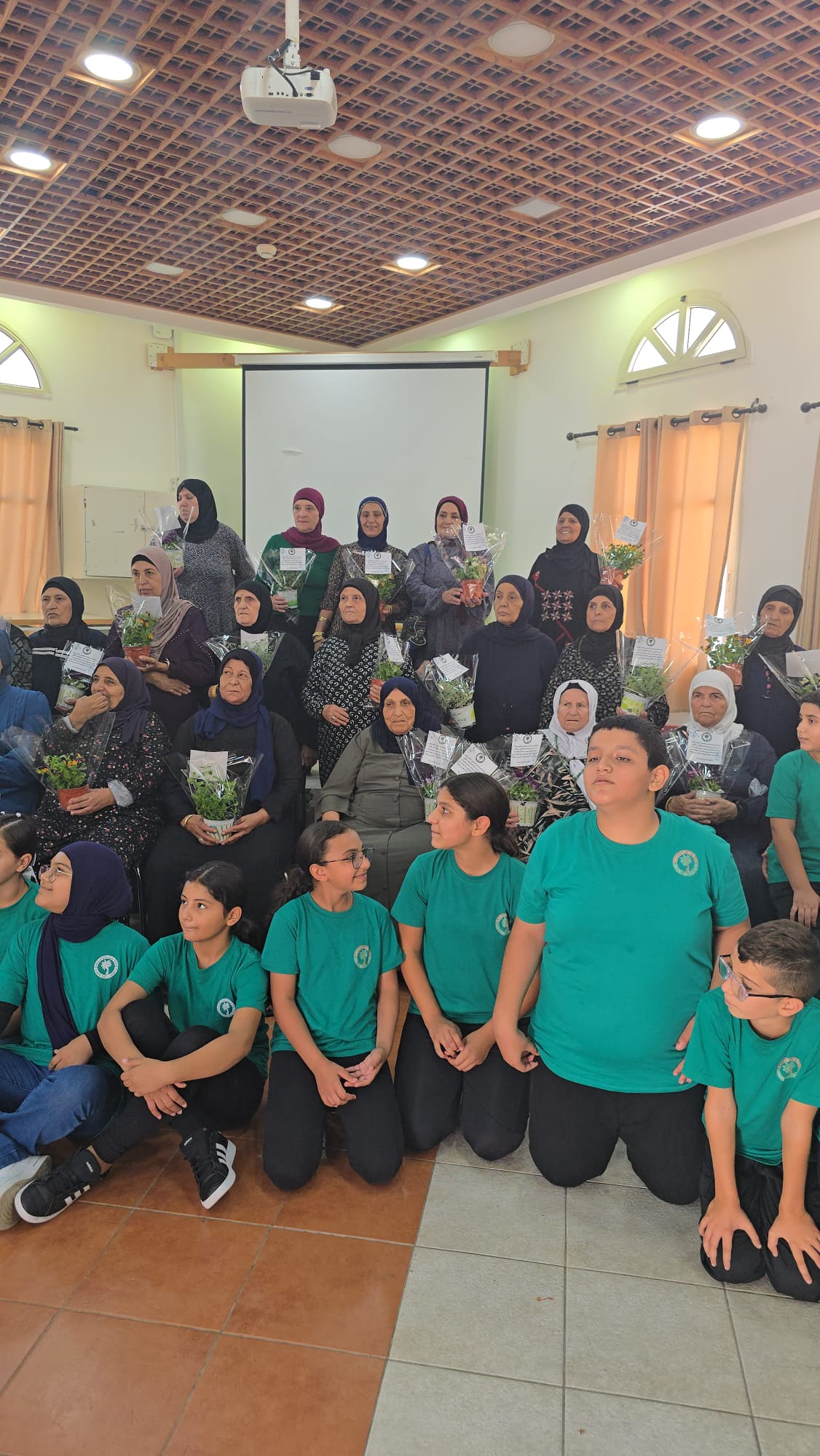 התלמידים התקבלו במועדון בשירה ובפעילות מוזיקלית, שיחה משותפת ולבסוף חילקו הילדים עציצים למשתתפות.