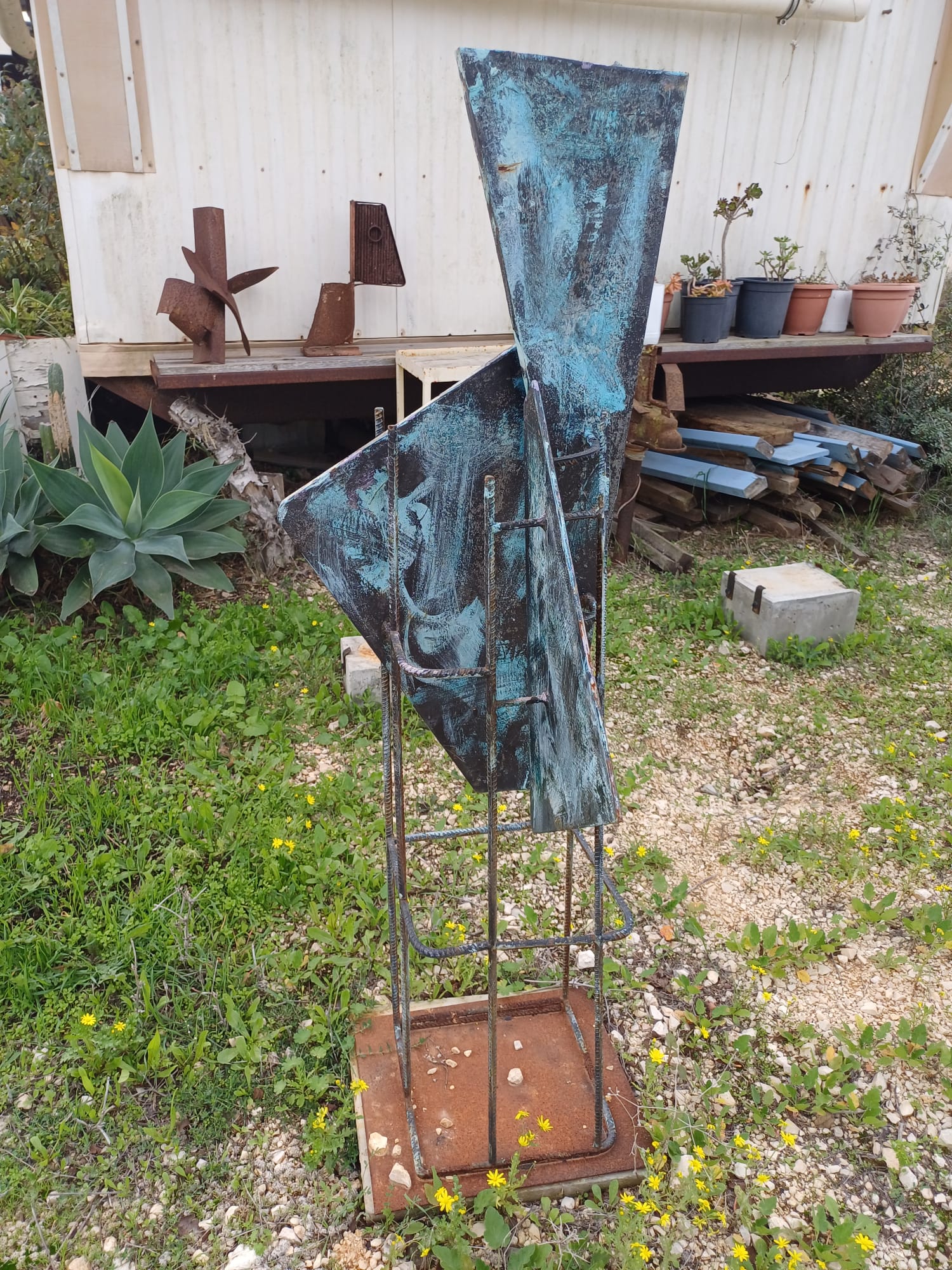 המתכת שנאספה מוחזרה וחזרה אל הטבע בצורת פסלים דוממים ונוכחים. (צמוד למשתלת אילנה)