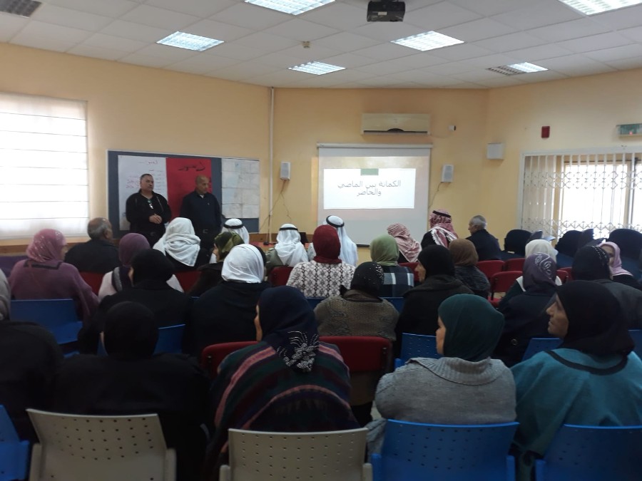 אחרי הפגישה הראשונית שמעו כל הנוכחים הרצאה מפיו של עיד סואעד על ההיסטוריה של הכפר , תולדותיו והשתלשלות ההקמה, סיפורים על הגעת החשמל לכפר, המים הזורמים וכדומה- כשהכל מלווה במצגת תמונות שריגשה את כל הנוכחים כולל המארחים אשר זיהו את עצמם ואת בני משפחתם בתמונות הישנות.