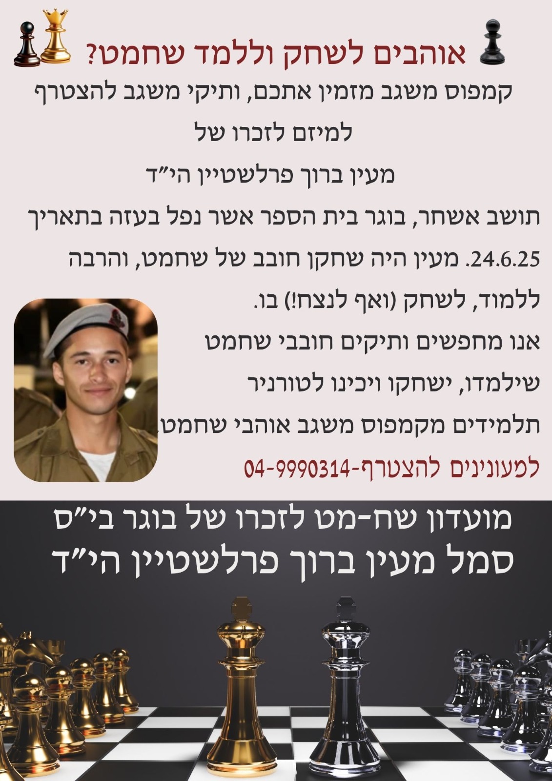 מיזם שחמט לזכר חלל צה"ל מעין ברוך פרלשטיין ז"ל