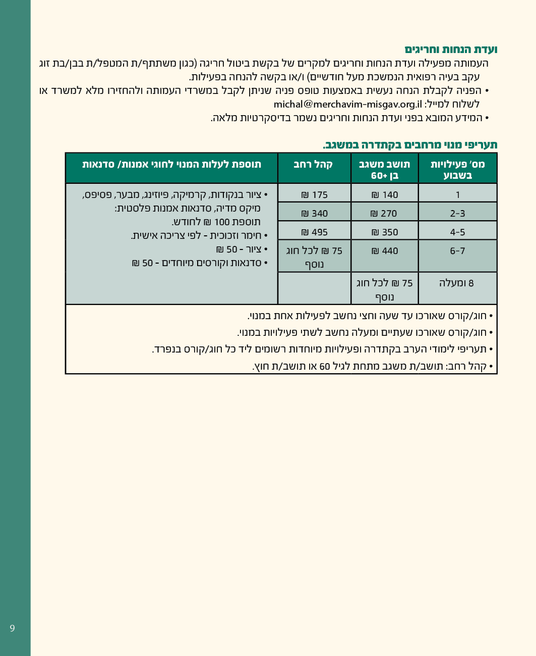 משתתפי מרחבים העונים על תנאי הזכאות לסבסוד מוזמנים להירשם במזכירות העמותה , או לשלוח מייל לשרי: