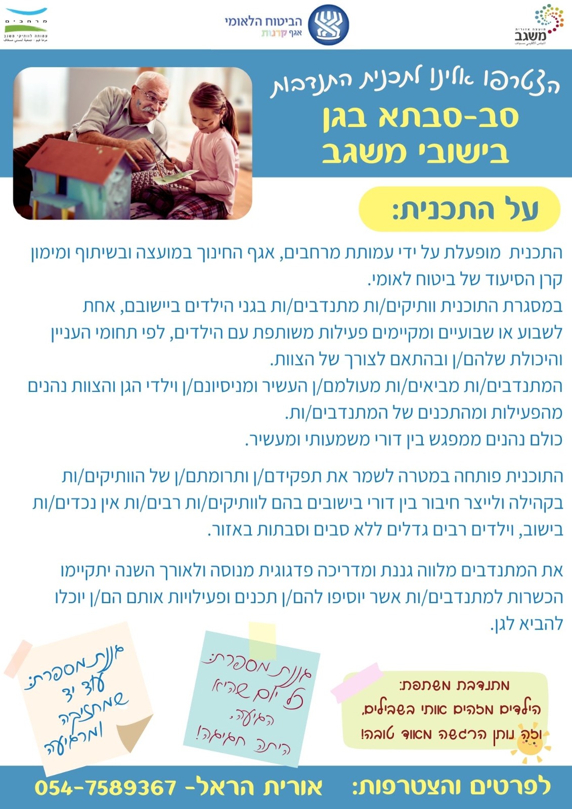 התנדבות של סבים וסבתות במערכת הגיל הרך בישובים.
