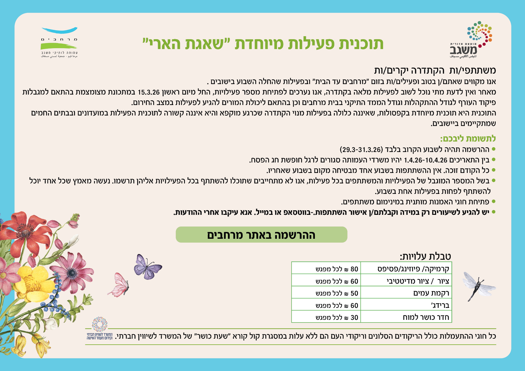 ההרשמה לפעילויות הפרונטליות באתר מרחבים.