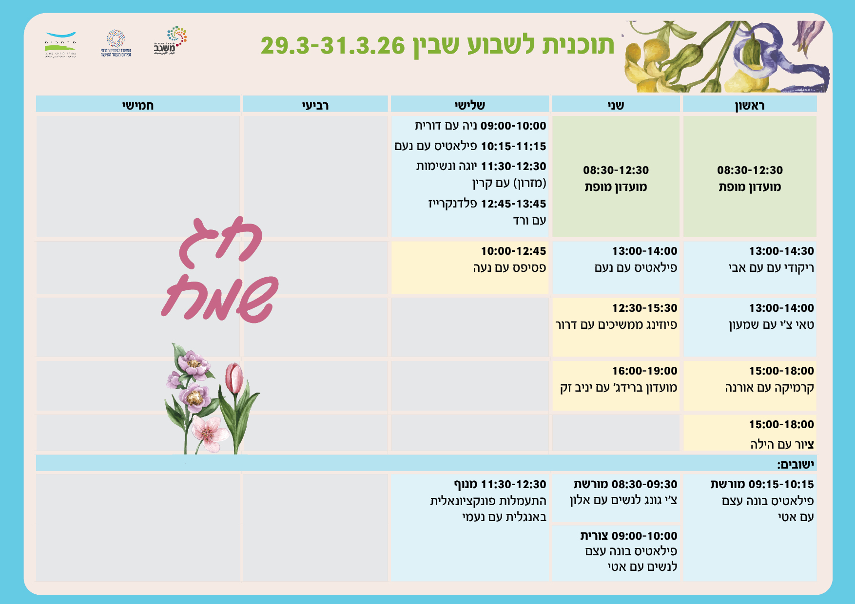 גם תוכנית שידורי הזום פועלת עד 31.3.26 ולאחר מכן יוצאת לחופשה ( בתקווה שאחרי פסח נשוב לפעילות שגרתית) ב"מרחבים עד הבית"