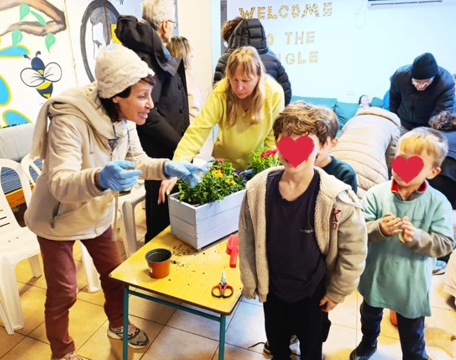 הילדים אספו קרשים וצבע, אחד האבות בנה את האדניות במהירות והרבה אהבה,